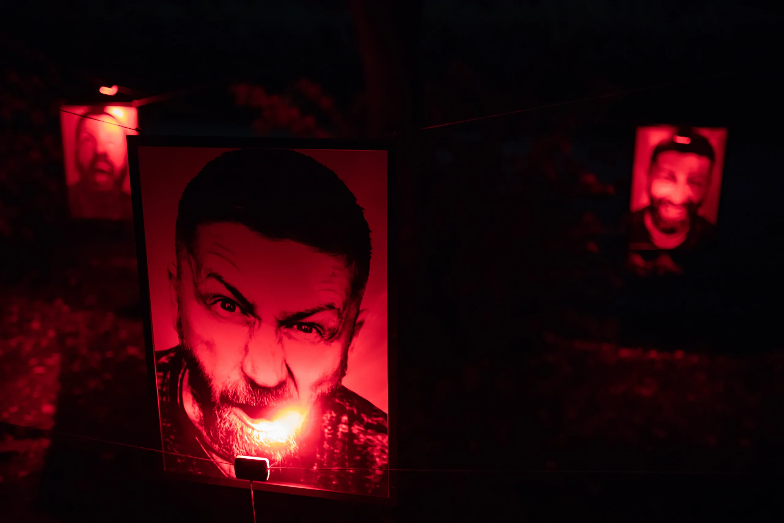 Instalacja składa się z 8 obrazów rozmiaru 100 na 70, przeźroczystych, podświetlonych czerwonym, mrugajacym światłem…
