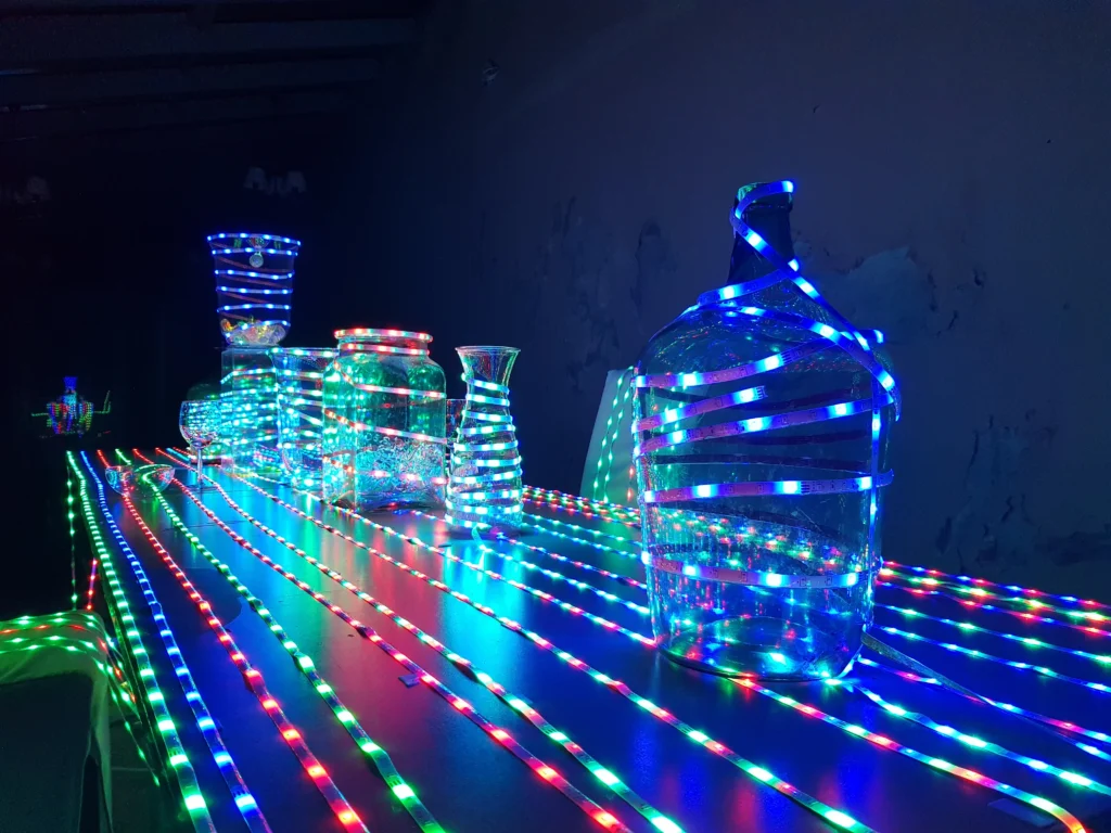 Najnowszy projekt to przeszło 180m kolorowych ledów, tworzących wielką ferię kolorowych świateł, migotań oraz pulsacji.